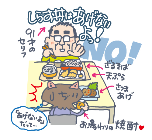 しかもセットの天ぷらも「半分いらない。でも、エビとかぼちゃはあげないよ」と、、、なんだ、そのあげないよ!セリフは!!!